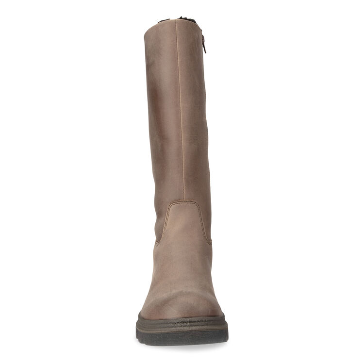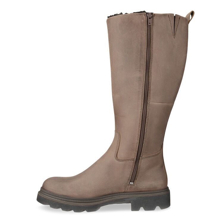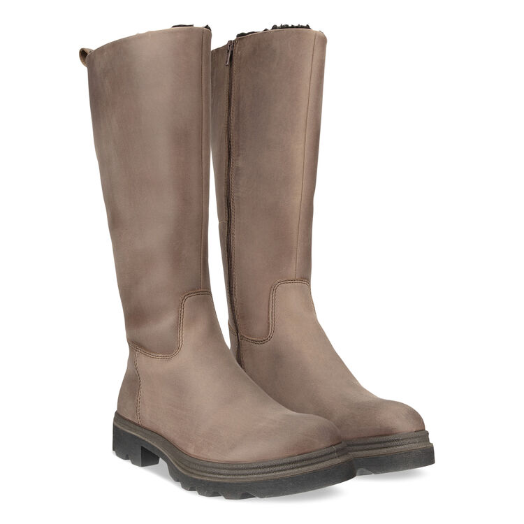 Легкая и гибкая полиуретановая подошва с невысоким каблуком дополнена резиновым протектором для устойчивости шага. Уютная утепленная подкладка и внутренняя застежка-молния надежно защищают от ветра и холода. Съемные текстильные стельки обеспечивают дополнительный комфорт. Небольшая вставка эластичной ткани на голенище обеспечивает более комфортную плотную посадку.
