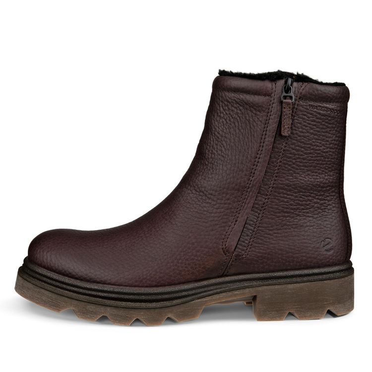 Верх из зернистой натуральной кожи ECCO завершает строгий и роскошный образ обуви и обладает прочностью. Влагозащитная мембрана Waterproof помогает сохранить ноги в тепле и сухости в условиях переменчивой погоды зимы и межсезонья. Подкладка из искусственного меха согревает не хуже натуральных материалов, но меньше деформируется и отлично абсорбирует излишки влаги. Текстильная стелька помогает поддерживать комфортный микроклимат, а пеноматериал в основе усиливает поддержку стопы.