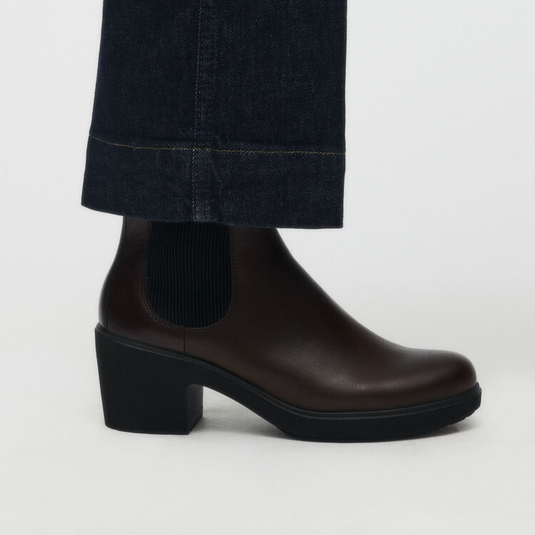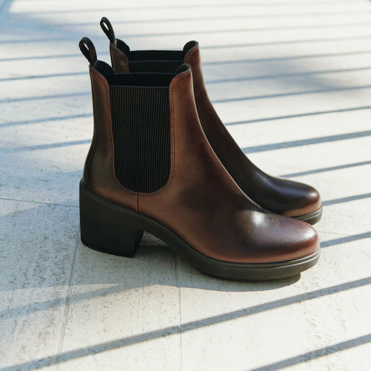 Классический силуэт челси смотрится современно и актуально благодаря роскошной фактуре кожи и утонченной форме каблука. Базовая палитра приглушенных цветов позволяет легко вписать модель в гардероб для холодного времени года.