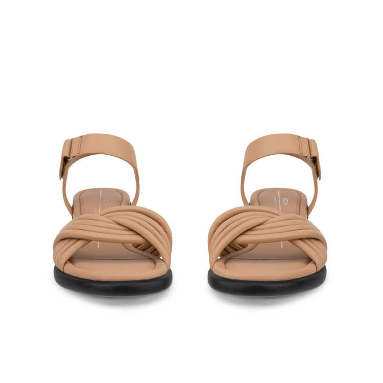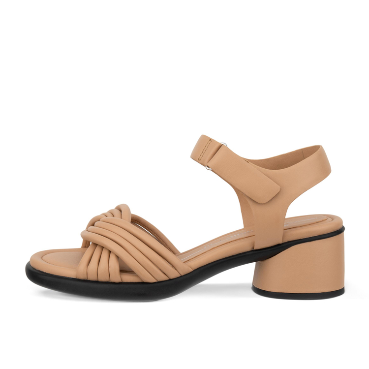 Изящный крой модели подчёркивается скруглёнными линиями без острых углов. Переплетённые ремешки из мягкой кожи несмотря на минимализм облика придают паре оригинальность. Закругленный носок и элегантный каблук высотой 35 мм, обёрнутый в кожу, создают гармонию, когда каждая деталь работает на создание утонченного и современного образа.