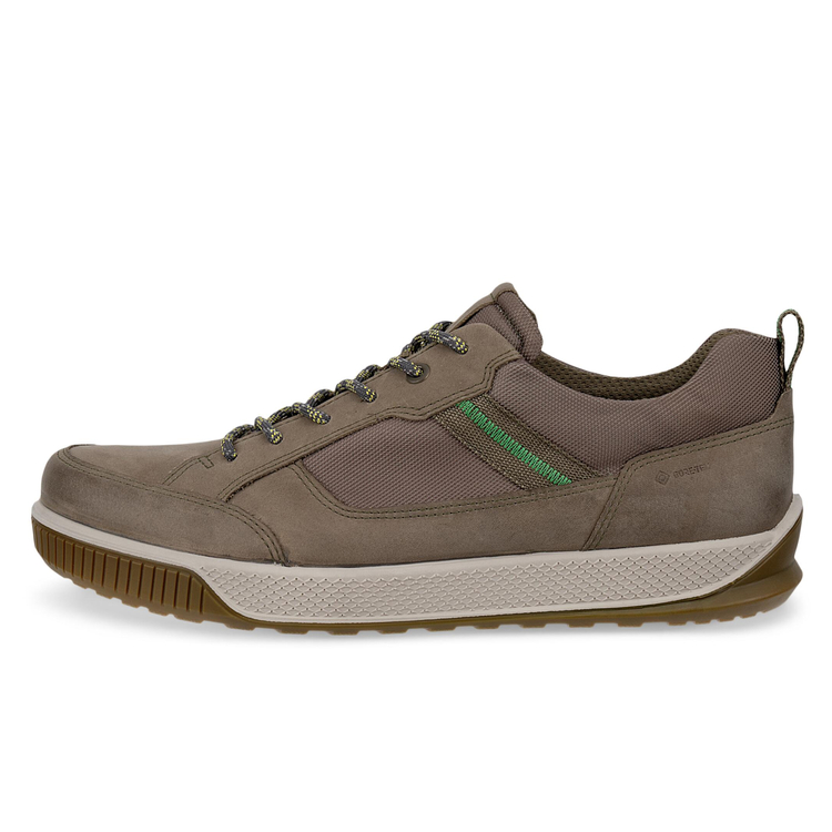 В мужских кедах из натурального промасленного нубука ECCO BYWAY TRED непринужденный стиль дополнен анатомической подошвой и климатической мембраной GORE-TEX.