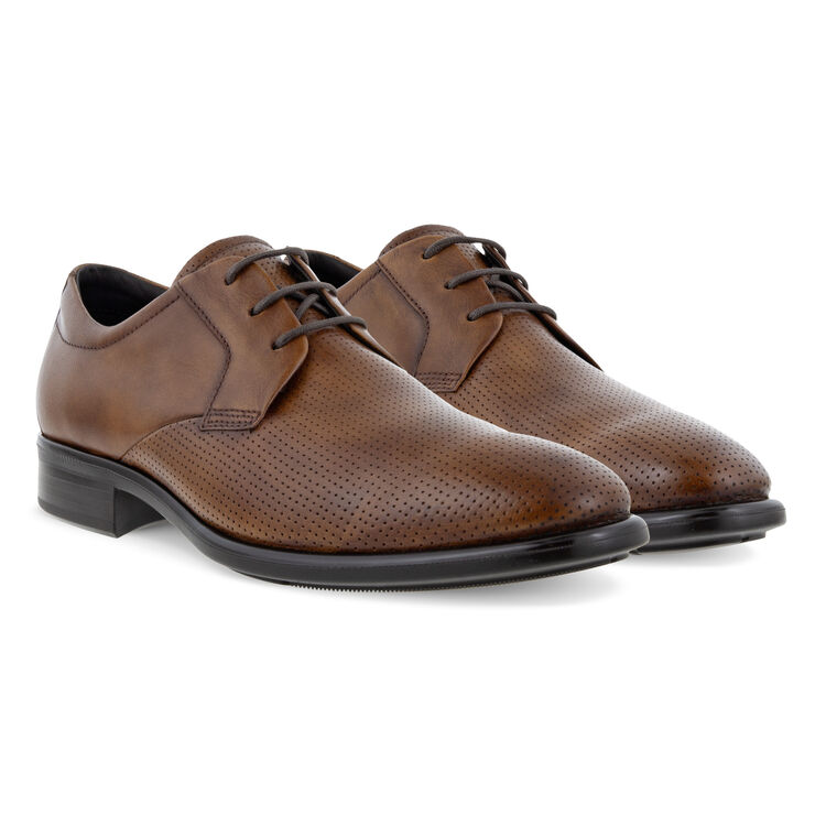 Мужские дерби из натуральной кожи ECCO CITYTRAY дарят невероятный комфорт, который может предоставить только бренд ECCO. Удобные и практичные от носка до пятки, дерби идеально сидят на ноге благодаря мягким премиальным материалам и анатомической подошве с резиновым каблуком. Уникальная двухкомпонентная подошва ECCO TRAYTECH с нижним резиновым слоем гарантирует великолепное сцепление на любой поверхности и в любую погоду. Кожаная подкладка и стелька со временем принимают форму стопы, делая обувь еще удобнее. Стильное сочетание итальянского силуэта и датской эстетики делает модель узнаваемой и притягивающей взгляды. Не упущена ни одна деталь: элегантная строчка, декоративная перфорация и три ряда люверсов дополняют элегантный дизайн. Инновационная технология ECCO FLUIDFORM™ создает мягкую и гибкую подошву, которая полностью повторяет контуры стопы, и обеспечивает идеальную амортизацию и комфорт без клея и швов.