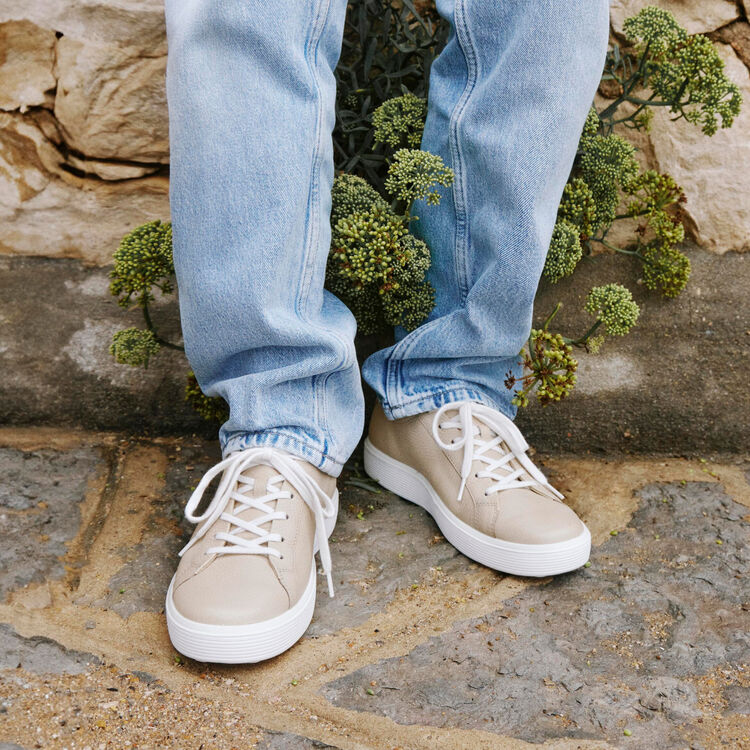 Премиальная кожа Aeon A60 собственного производства бренда ECCO отличается прочностью, эластичностью и мягкостью. Роскошная зернистая фактура смотрится стильно и дорого и хорошо сохраняется без повреждений даже при активной носке. Подкладка из мягкой натуральной кожи поддерживает комфортный микроклимат внутри кедов.
