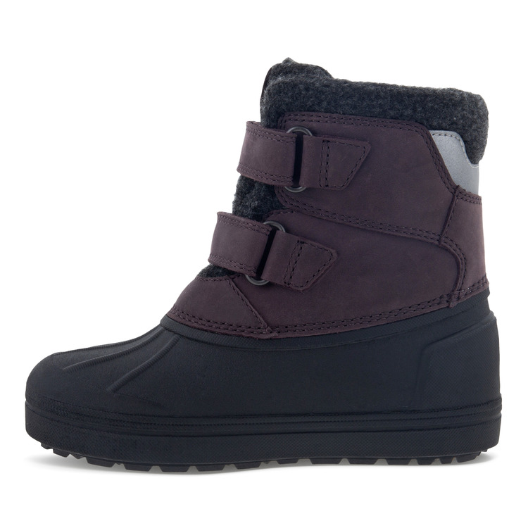 Подошва выполнена из прочной резины по типу галош: вся нижняя часть надежно защищена от промокания и скольжения на льду и снеге. Два ремешка на липучках помогают быстро отрегулировать посадку модели. Светоотражающие детали не только выглядят стильно, и делают прогулки в темноте безопаснее. Подкладка из натуральной шерсти и съемные фетровые стельки добавляют тепла и уюта.