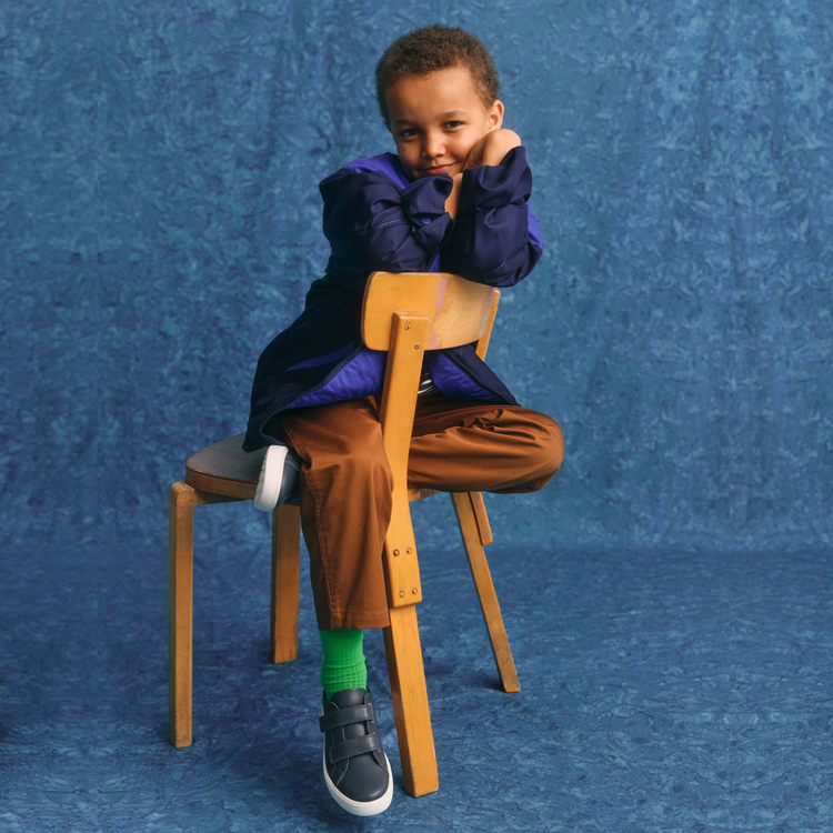 Лаконичный, минималистичный, но при этом все еще детский и игривый дизайн модели с тиснением и логотипом кедов понравится и юным модникам, и их родителям.
