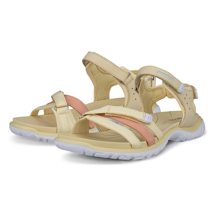 Прочная многослойная подошва в комбинации с тонкими ремешками создаёт аутдорный образ, который легко вписывается и в городские наряды. Яркий дизайн привлекает внимание и поможет добавить модный акцент в образ.