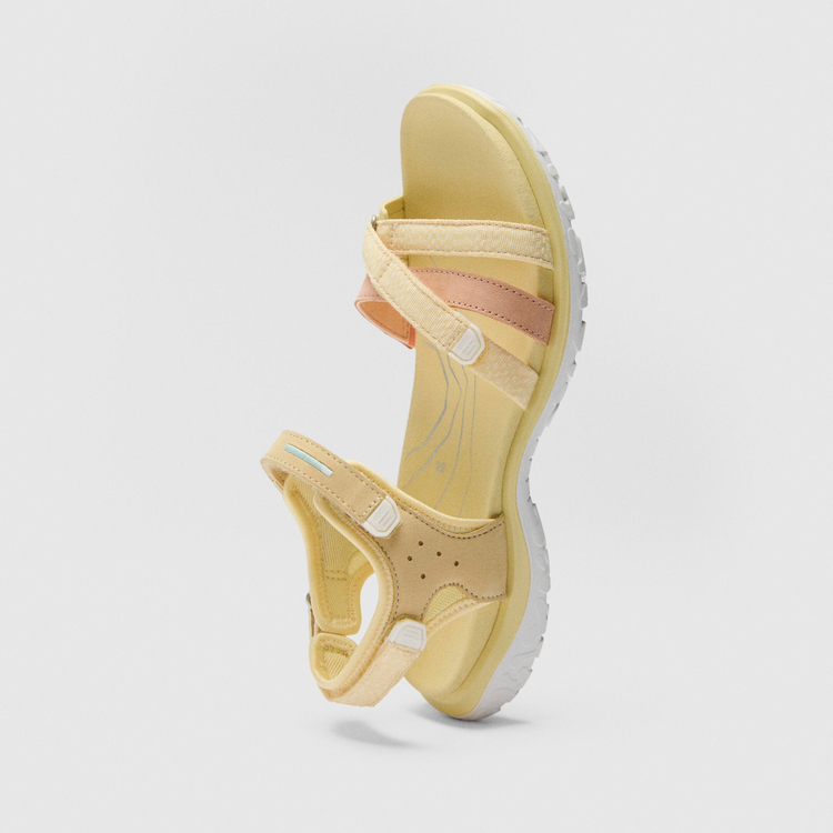 Ремешки из нубука и текстиля с текстильной подкладкой мягко садятся по стопе и не натирают. Микрофибровая стелька дарит прохладу в жару и поглощает лишнюю влагу для максимального комфорта.