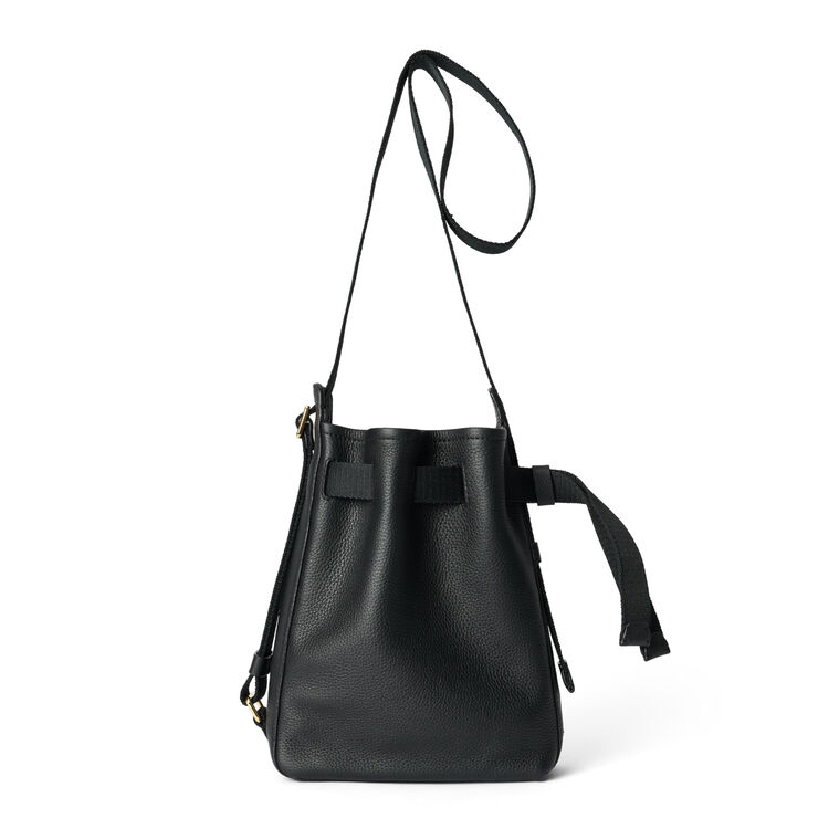 Основное отделение без подкладки завязывается при помощи шнурка, который затягивается и закрепляется небольшим ограничителем из кожи. В сумке найдётся место для небольшого блокнота или планшета, книги, телефона и всех самых необходимых мелочей. Специальное крепление на резинке поможет зафиксировать бутылку с водой или термокружку на одном месте. В комплекте имеется кошелёк на карабине для мелочи, карточек и ключей.