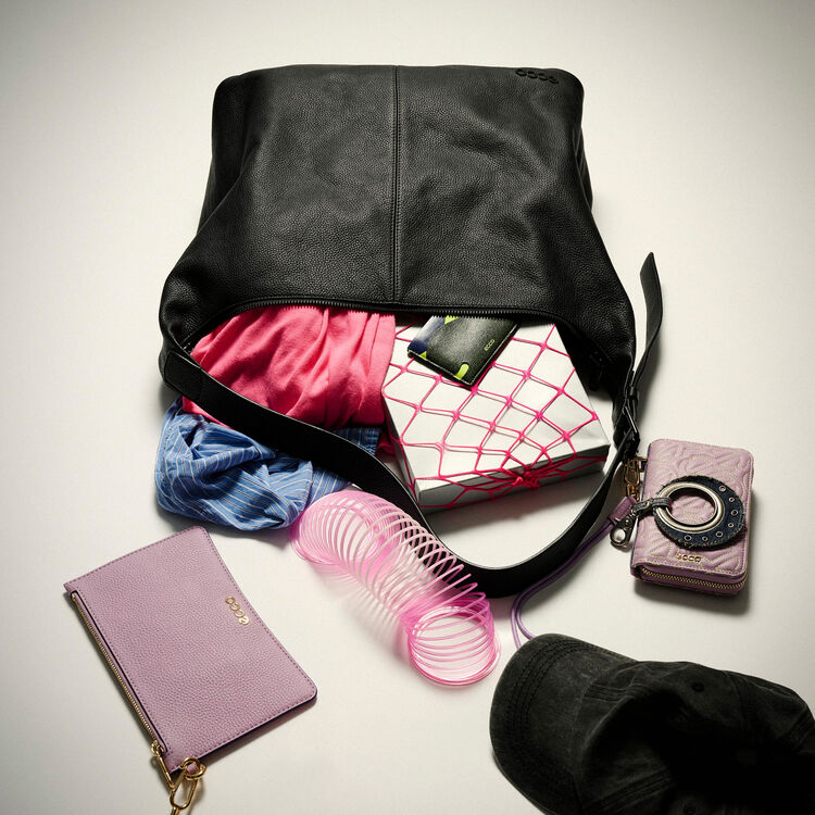 • Позолоченная или чёрная фурнитура эффектно комбинируется с металлическим логотипом ECCO на внешней стороне сумки в тон;